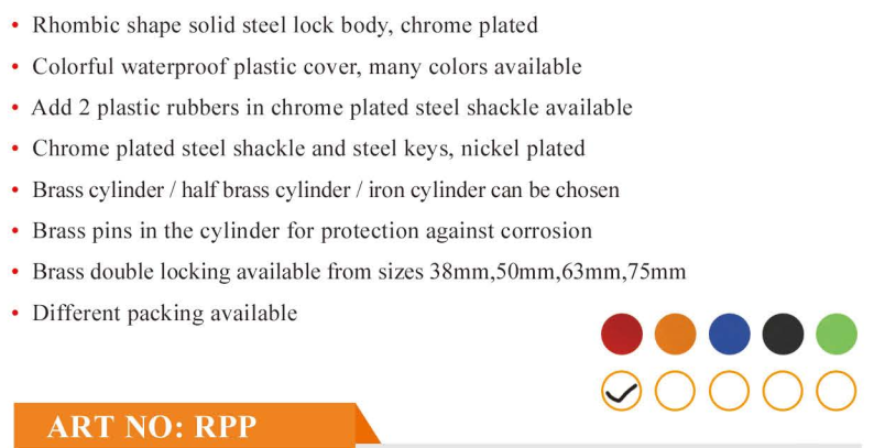 Model Number : Plastic Cover Rhombic Type Padlock