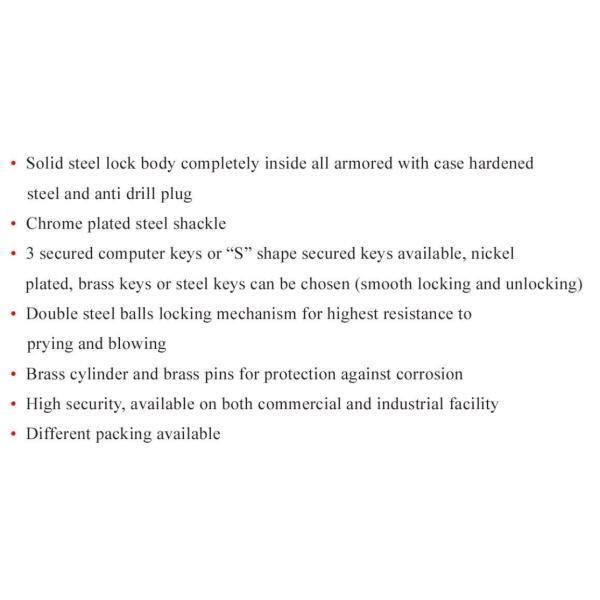 The High Security Padlock is classified under HS code 83011000, which means that it meets international standards for quality and security.